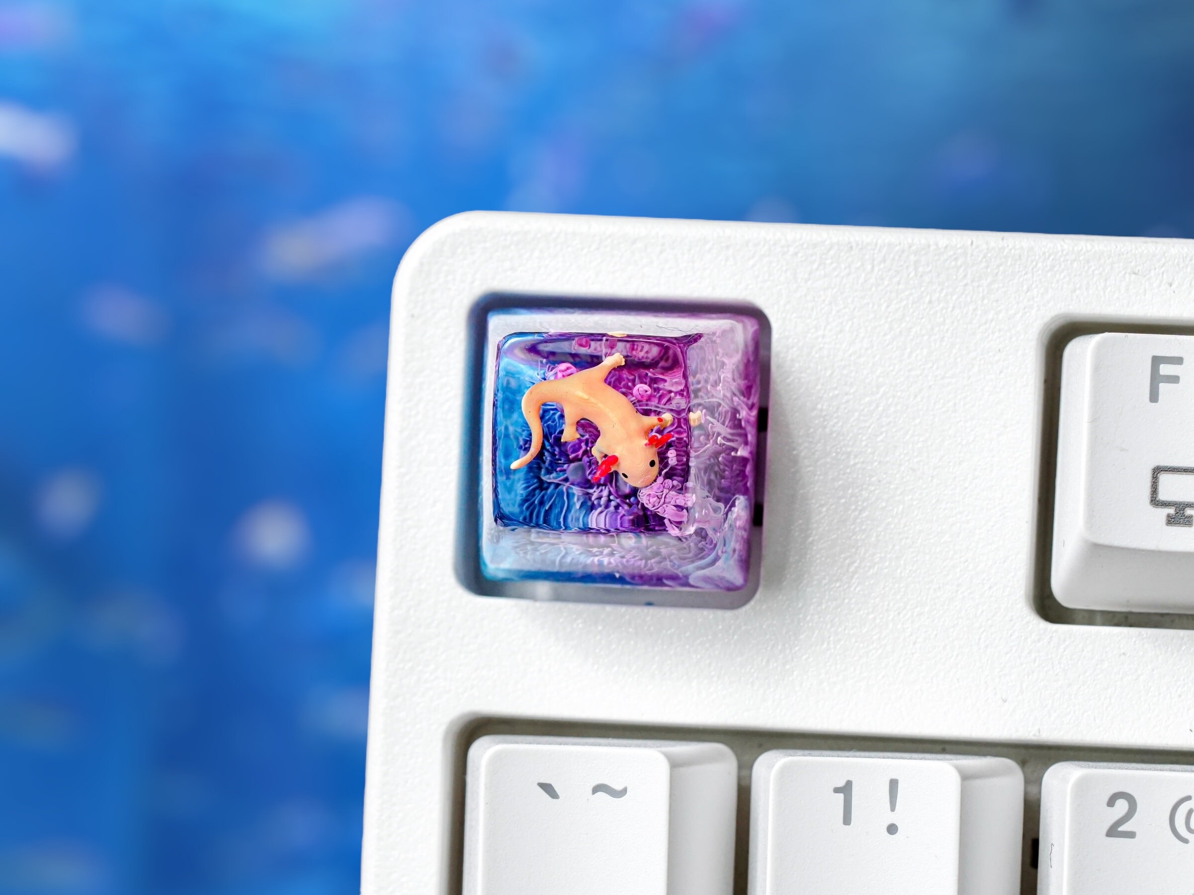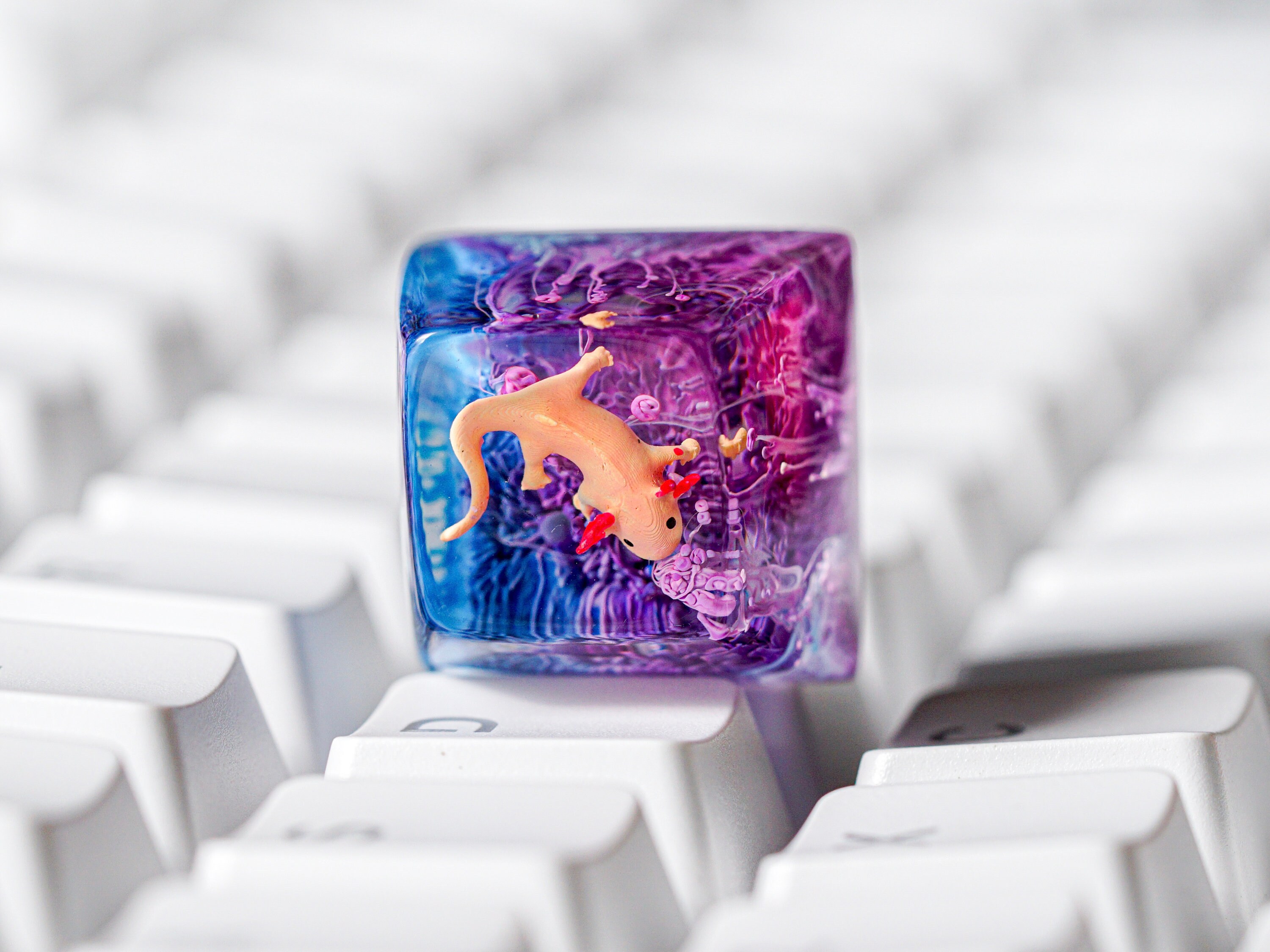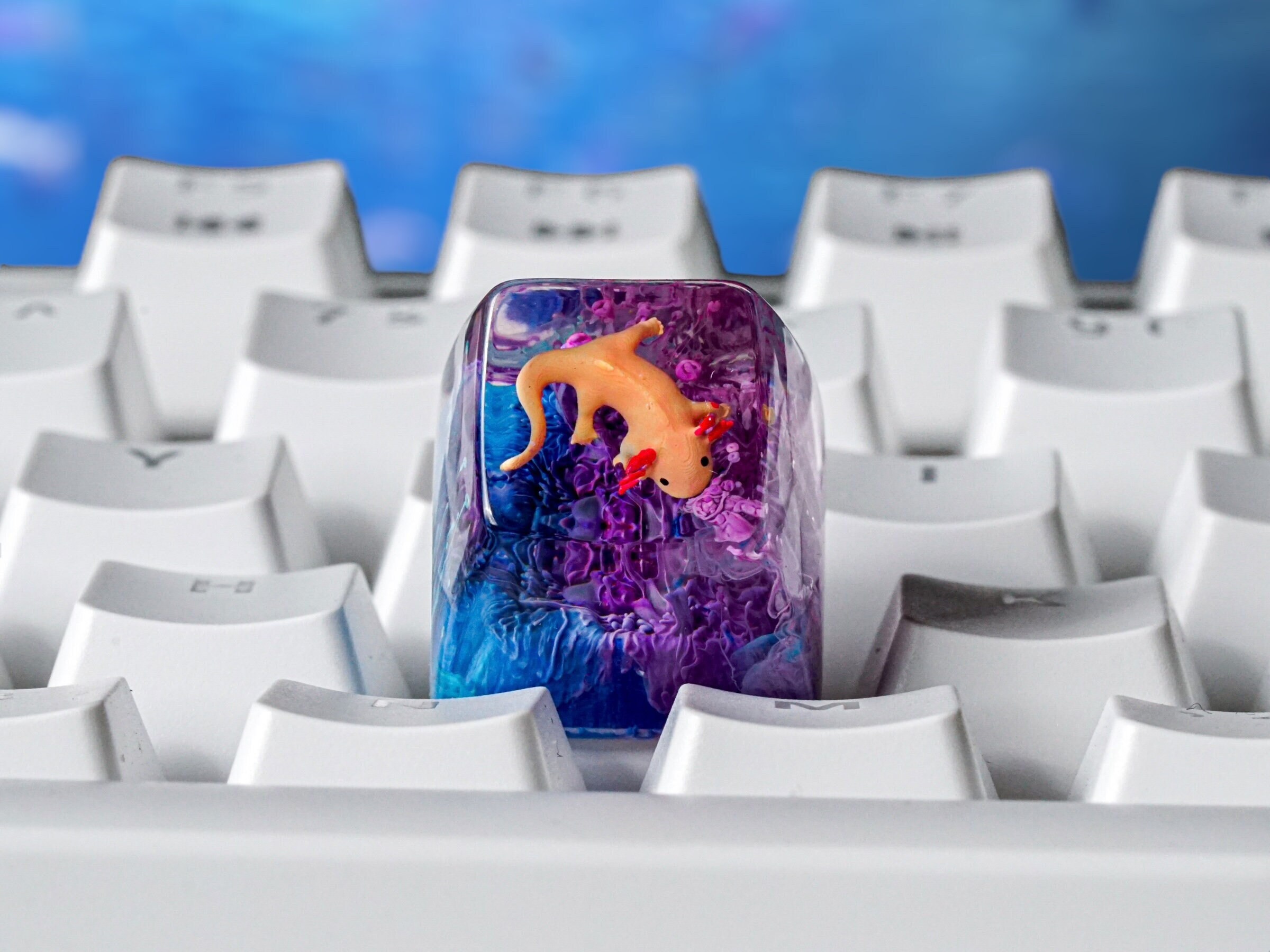 ✨ Axolotl Fish Keycap, Artisan Keycap, Resin Keycap, Keycap for MX Cherry Switches Michanical Keyboard, Gift for Him